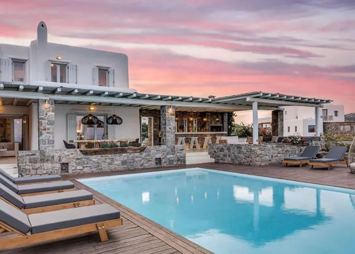 Neben den Annehmlichkeiten für Selbstversorger wie einer voll ausgestatteten Küchenzeile bietet diese Unterkunft in Super Paradise Beach auch einen Essbereich und einen Essbereich im Freien. Das Restaurant Lyo Bar Restaurant liegt nur 4 km von der Unterkunft entfernt. Die Bushaltestelle Super Paradise ist 450 Meter von der Villa Super Paradise Mikonos, so dass Gäste Super Paradise Beach leicht erkunden können. Die Villa Super Paradise Mikonos verfügt über eine Terrasse, wo Sie sich nach einem anstrengenden Tag entspannen können, sowie über einen Swimmingpool.